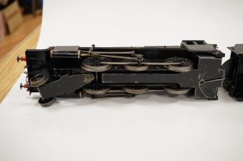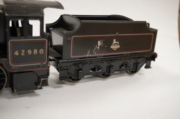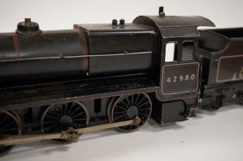 Lot 262 , An 0 gauge Bassett-Lowke live steam spirit fired tinplate BR 2-6-0 Mogul tender locomotive, 42980, with original fuel tank and burner, two controls in the cab accessed through the cab roof