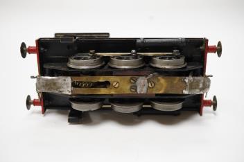 Lot 268 , An 0 gauge railway tinplate Bonds 0-6-0 diesel Hunslet shunter, 4, for 3-rail running, with alterations to the motor and a new centre shoe adaptation
