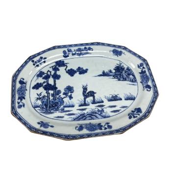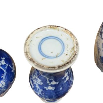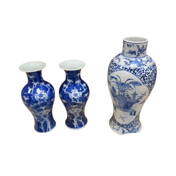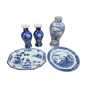 Lot 367 , An 18th century Chinese blue and white dish, width 27cm, a similar plate, and three 19th century Chinese blue and white vases (5)