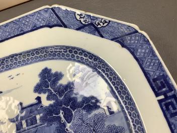 Lot 1370 , An 18th century Chinese octagonal blue and white dish, 40cm wide