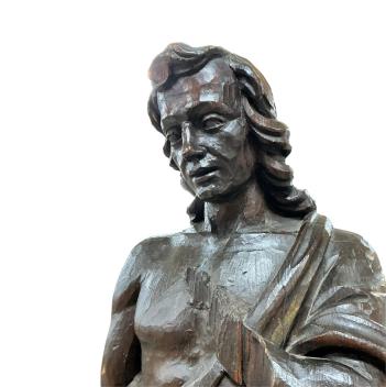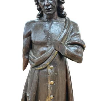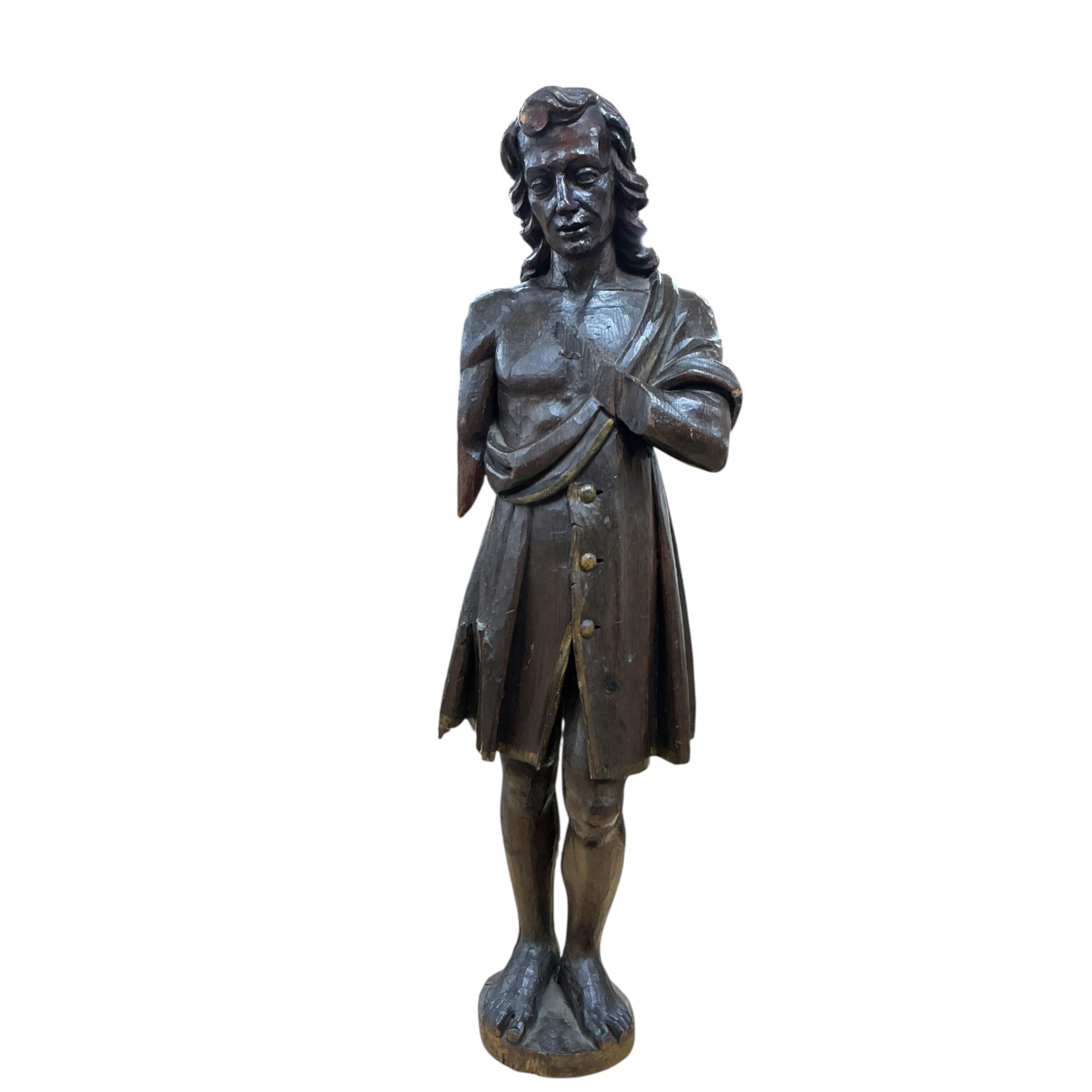 Lot 403 , An 18th century carved pine figure of a lady, height 96cm.