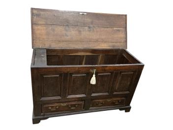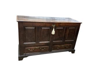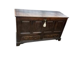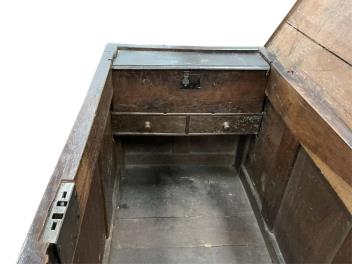 Lot 1019 , An 18th century oak mule chest, width 148cm, depth 57cm, height 89cm