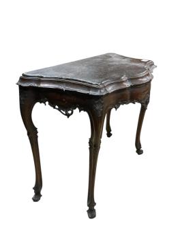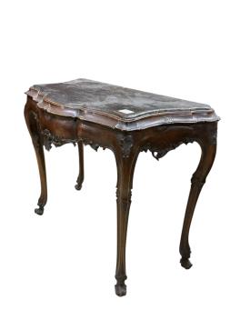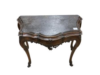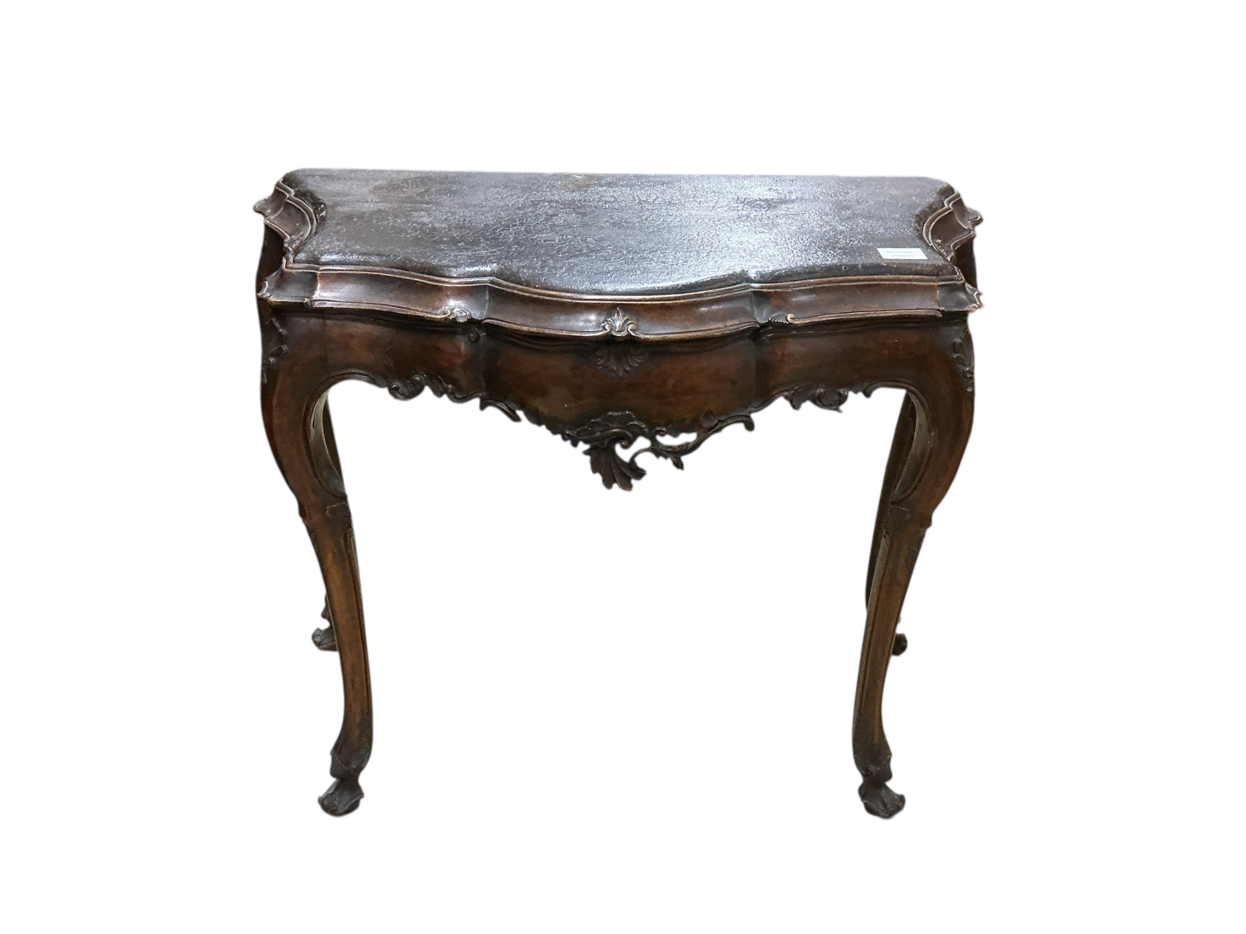 Lot 1077 , An 18th century style Italian serpentine leather topped walnut console table (adapted), width 84cm, depth 42cm, height 68cm