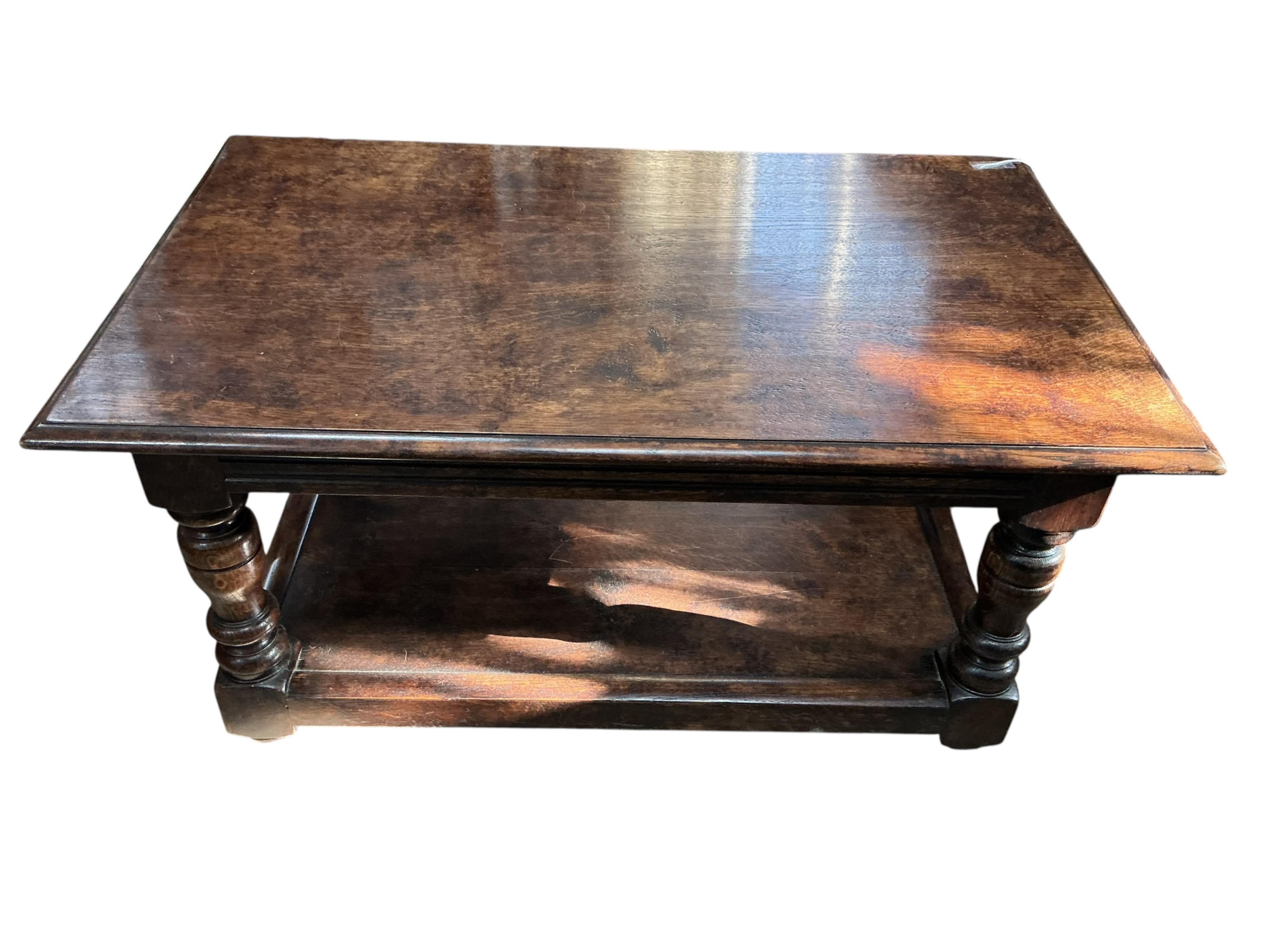 Lot 1046 , An 18th century style rectangular oak two tier coffee table, width 91cm, depth 56cm, height 43cm