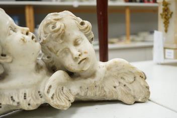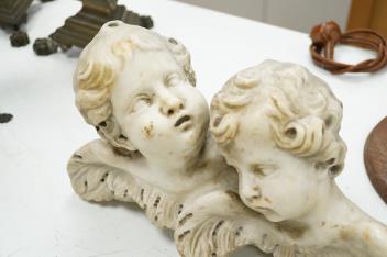 Lot 1289 , An 19th century Italian white marble carving, twin angel heads, 34cm wide