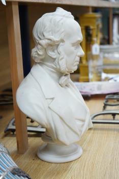 An Adams & Co Parian ware bust of Richard Cobden, published by John Stark Etruria, June 1865, 40cm