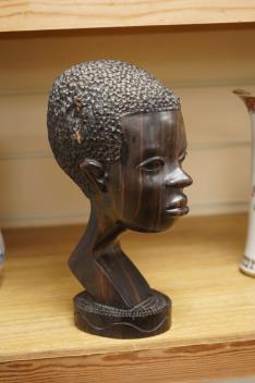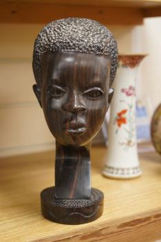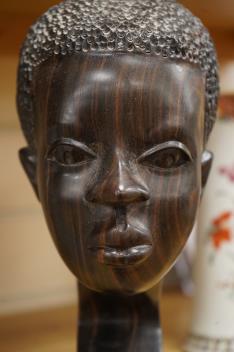 Lot 266 , An African macassar ebony portait bust of a youth, 29cm