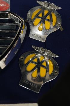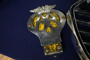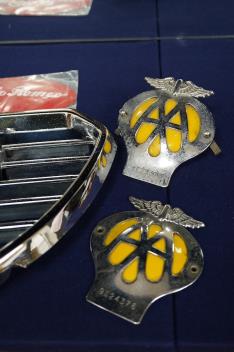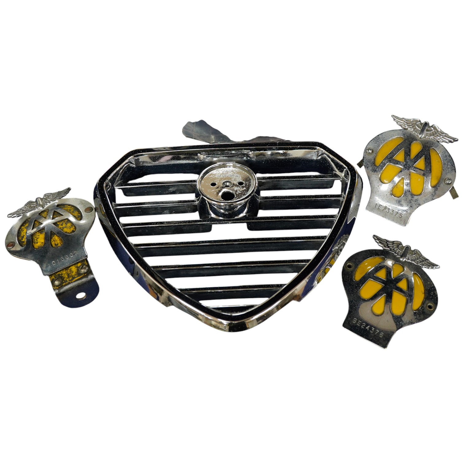 Lot 149 , An Alfa Romeo radiator grill, 28.5cm wide, three AA radiator badges and a modern Alfa Romeo enamel plaque