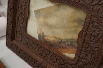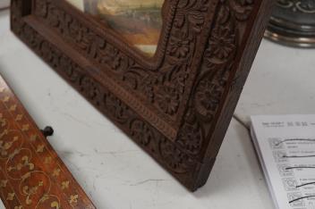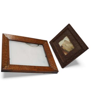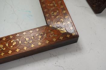 Lot 1317 , An Anglo-Indian brass inlaid Hoshiarpur frame and a floral carved teak frame, largest 39 x 34cm overall