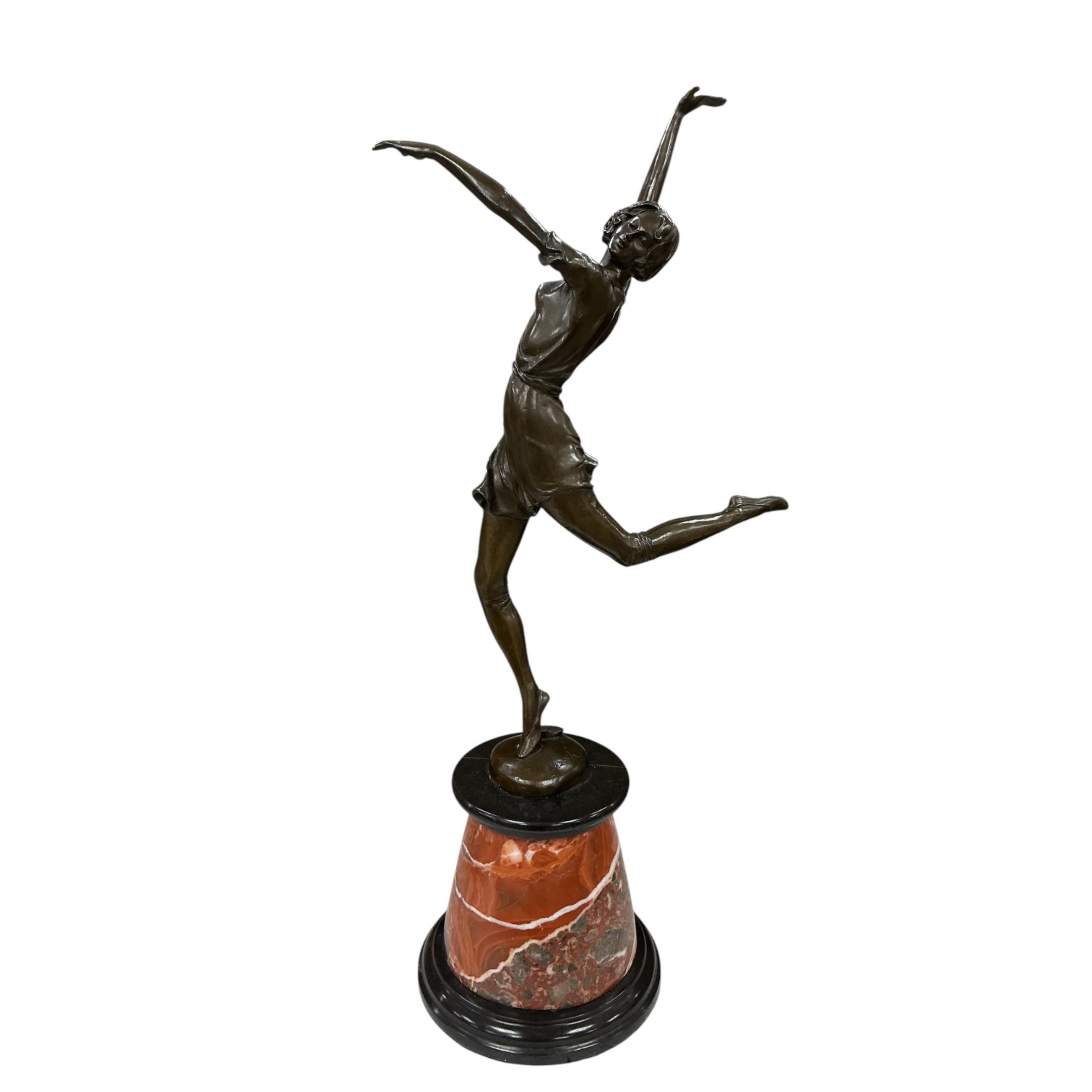 Lot 1293 , An Art Deco style bronze figure of a dancer on rouge marble base - 63cm high