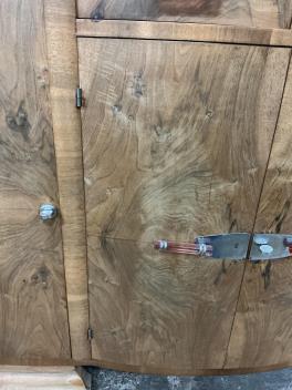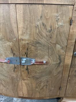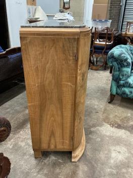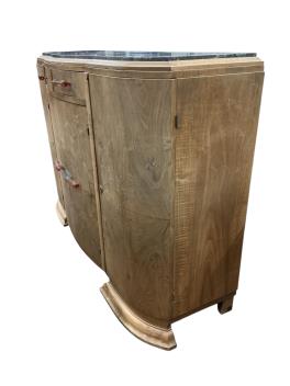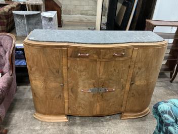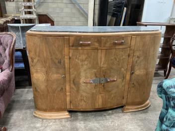 Lot 2141 , An Art Deco walnut marble topped bow front sideboard, width 158cm, depth 50cm, height 110cm