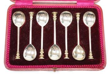 Lot 812 , An Edwardian cased set of six 'The Salisbury Spoons', Thomas Bradbury & Sons, Sheffield, 1908, 97mm, 3.4oz.