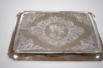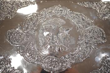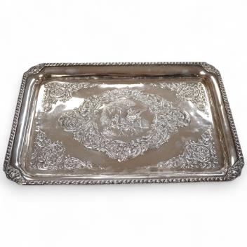 Lot 1835 , An Edwardian embossed silver dressing table tray, by Henry Matthews, Birmingham, 1901, length 32.1cm, 16.8oz.