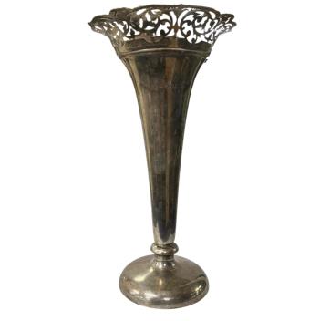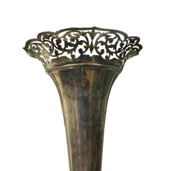 Lot 832 , An Edwardian large silver mounted trumpet vase, with pierced border, James Deakin & Sons, Chester, 1901, height 30.8cm, weighted.