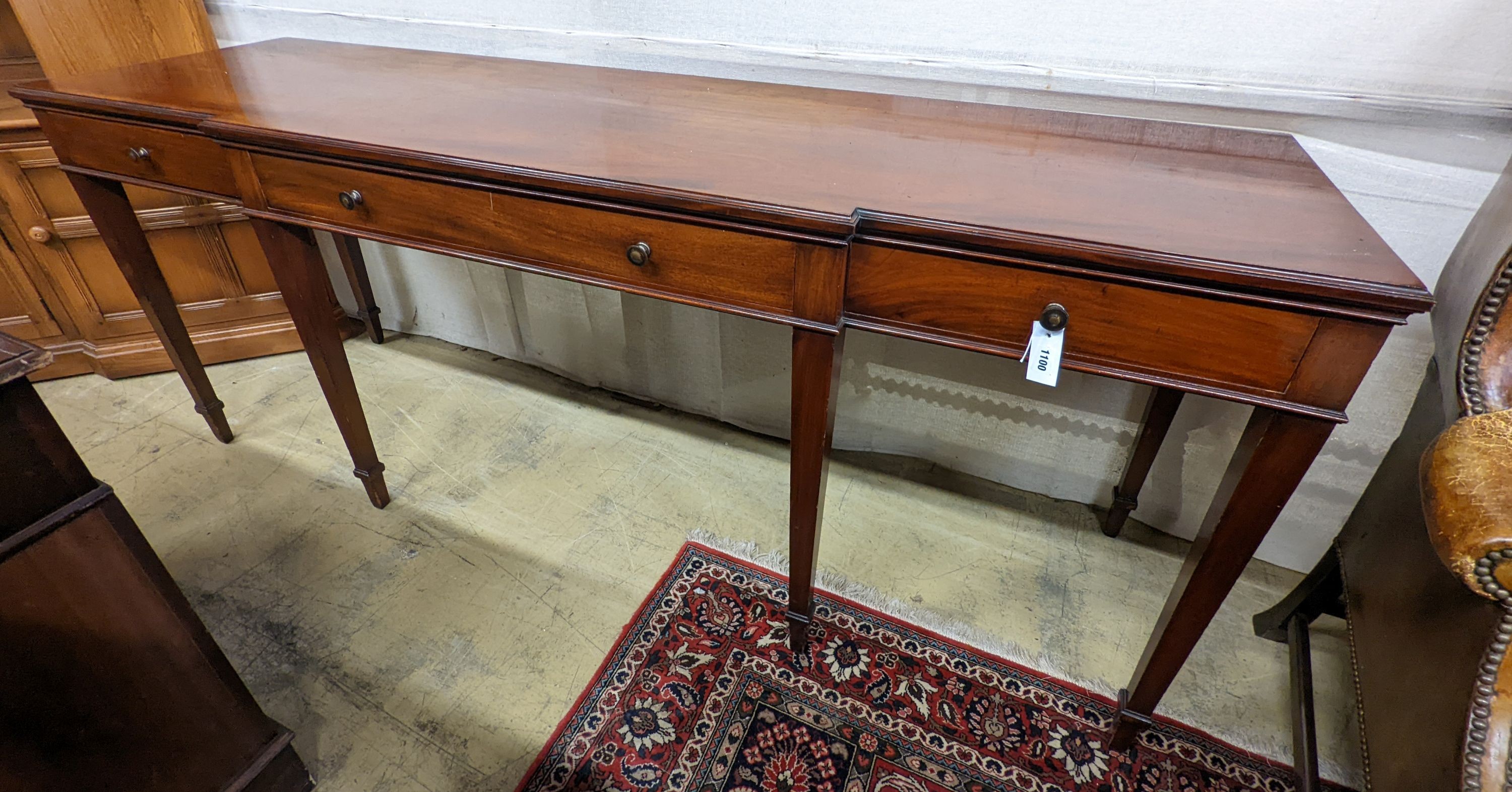 Lot 1100 , An Edwardian mahogany break front serving table by Howard & Son, London, width 214cm, depth 60cm, height 85cm