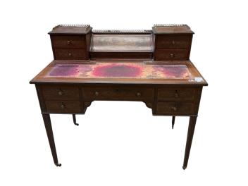 Lot 1024 , An Edwardian marquetry inlaid mahogany kneehole writing table, width 104cm, depth 59cm, height 97cm