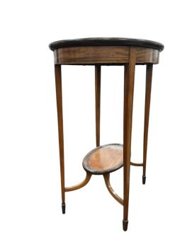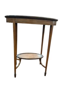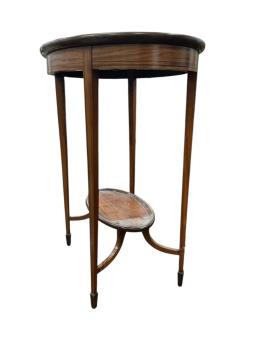 Lot 61 , An Edwardian marquetry inlaid mahogany oval two tier occasional table, in the manner of Edwards & Roberts, width 63cm, depth 43cm, height 72cm