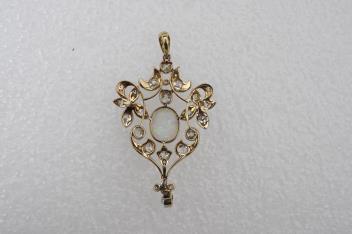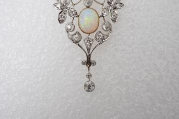 Lot 433 , An Edwardian opal and diamond pendant, early 20th century