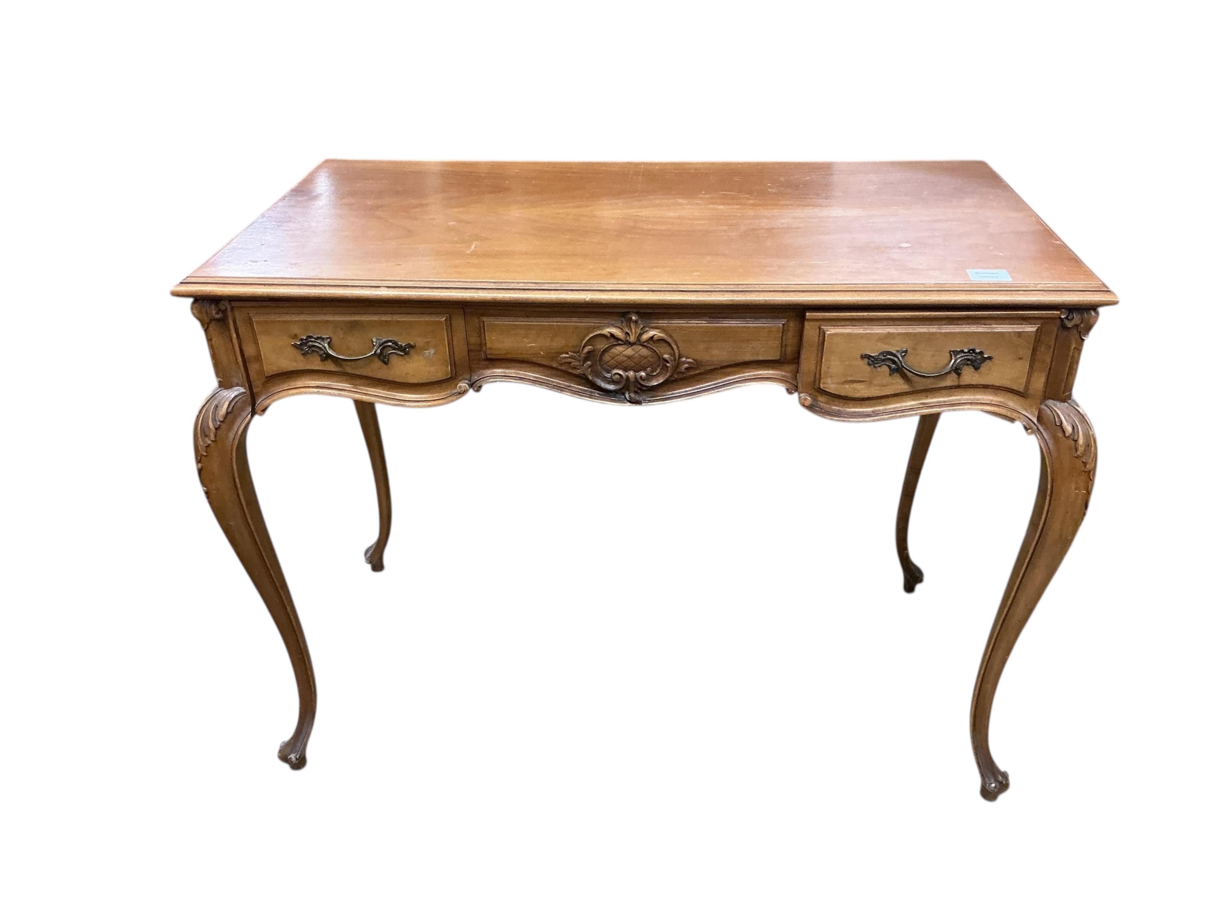 Lot 135 , An Edwardian walnut writing desk, width 103cm, depth 52cm, height 76cm