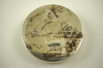 There are some minor surface scratches in places. Small scratch to the lower rim of the cover. The border and circumference of the lower part of the base appear to have decorated with an uneven scratch line? Base has obvious tarnish marks. Overall condition is otherwise good. Hallmarks clear. Gross weight approx. 68 grams.