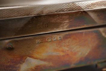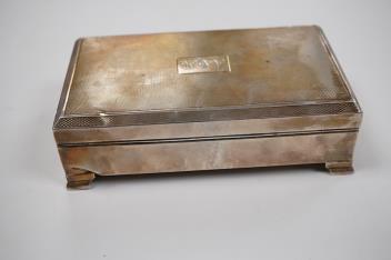 Lot 1833 , An Elizabeth II part engine turned silver rectangular cigarette case, by S.R. Rose & Son, London, 1955, with engraved initials, 15cm.