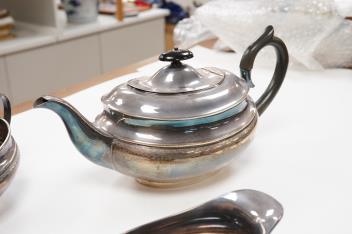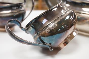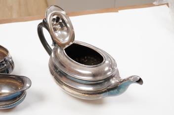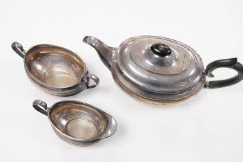 Lot 1846 , An Elizabeth II silver three piece tea set by Viners Ltd, Sheffield, 1960/61/62, gross weight 35.2oz.