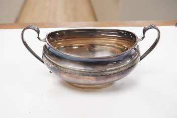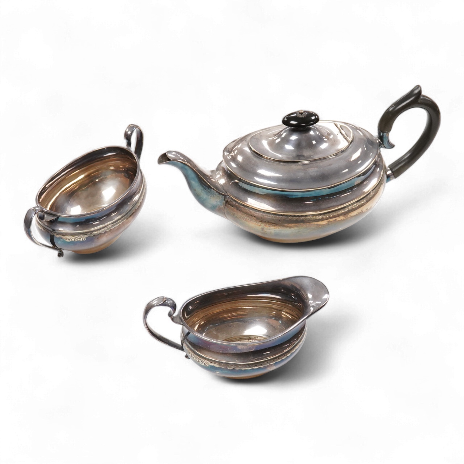An Elizabeth II silver three piece tea set by Viners Ltd, Sheffield, 1960/61/62, gross weight 35.2oz.
