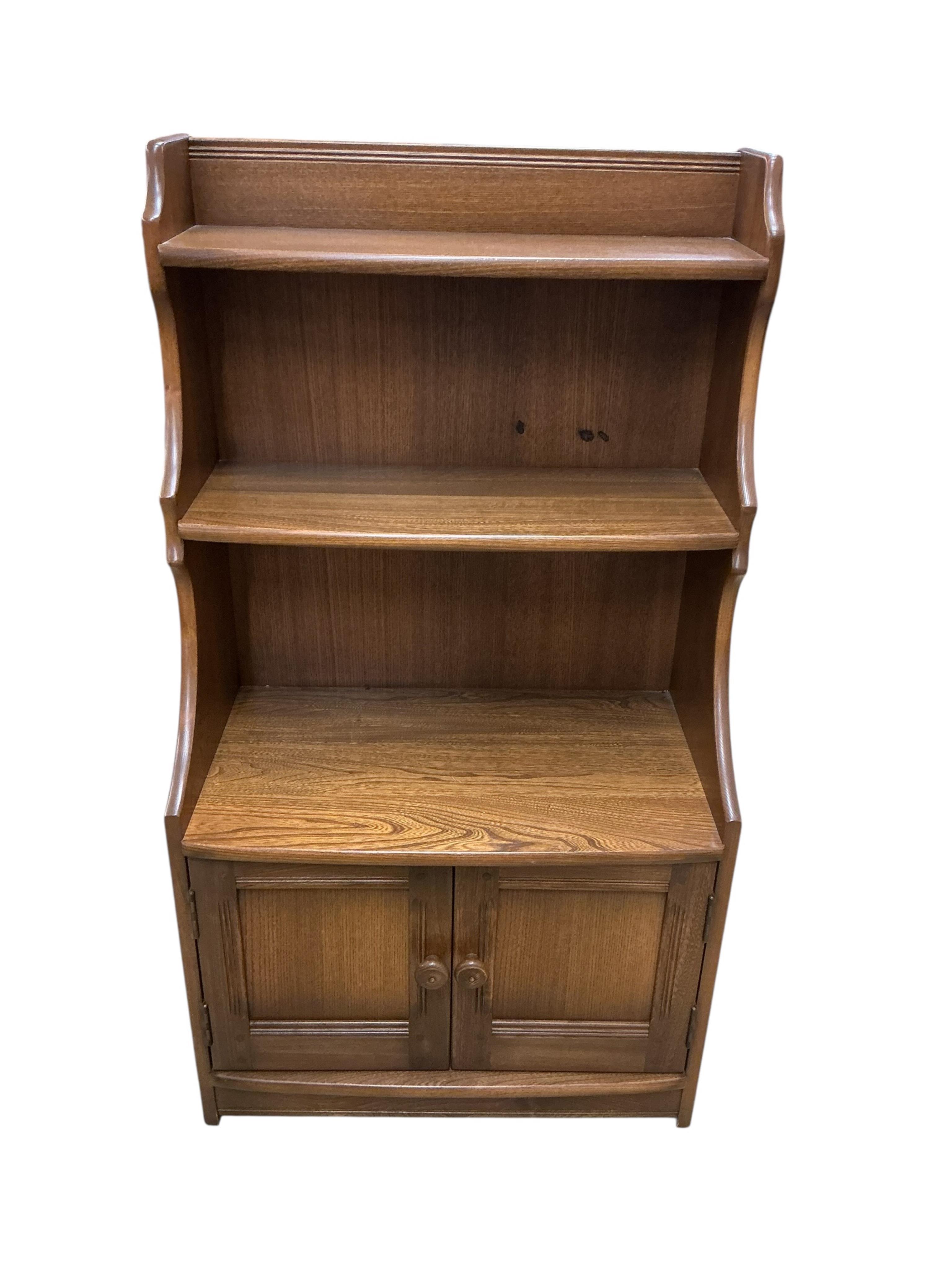 An Ercol elm 'waterfall' bookcase, width 61cm, depth 34cm, height 111cm