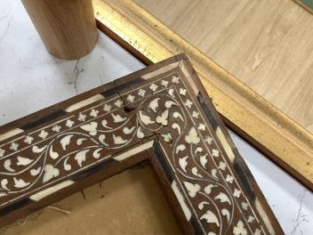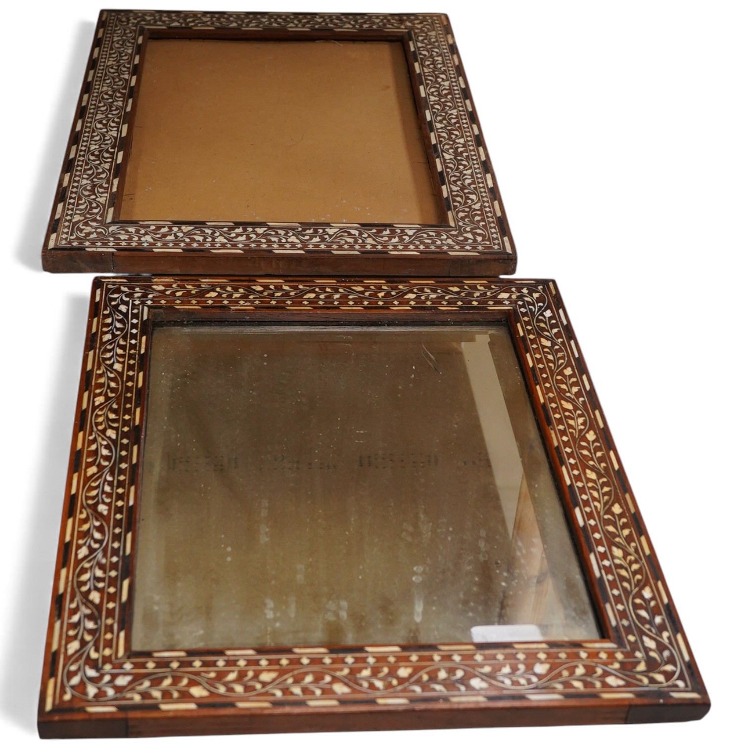 An Indian Hoshiarpur bone inlaid picture frame- 34.5cm wide x 45cm high and a similar mirror (2).