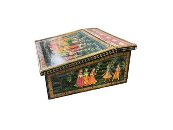 Lot 1062 , An Indian Kashmir desk with hinged slant top, width 58cm, depth 56cm, height 38cm