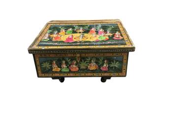 An Indian Kashmir desk with hinged slant top, width 58cm, depth 56cm, height 38cm