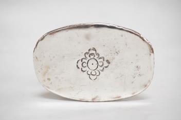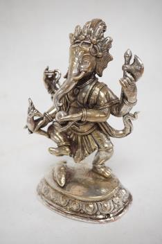 Lot 1022 , An Indian white metal mounted model of Ganesh, on a shaped oval base, height 12.8cm.