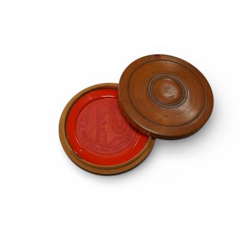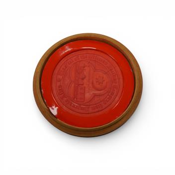 An Ottoman Railway Company boxwood cased wax seal, showing an image of a mid 19th century locomotive and carriage and reading; the seal of the Ottoman Railway Company from Smyrnato to Aidin, 8cm wide