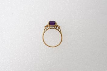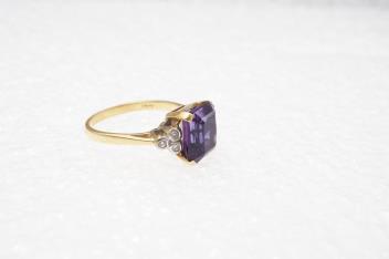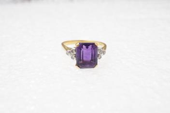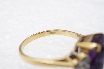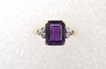 Amethyst measuring approximately 10 x 8 x 5.5mm, nice rich colour and good clarity. diamonds totalling approximately 0.15 carats. Overall in good condition, minor wear.