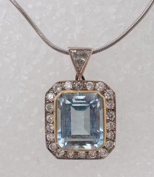 Lot 509 , An aquamarine and diamond pendant