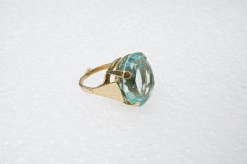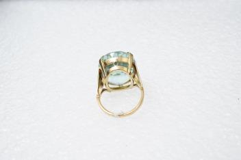Aquamarine approximately 19.5 x 16.3 x 11mm, very pretty, some typical 'rain' inclusions perpendicular to table - very attractive, minor wear, in good condition. Ring in good condition.