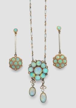 Lot 427 , An attractive Edwardian opal and diamond demi-parure, early 20th century