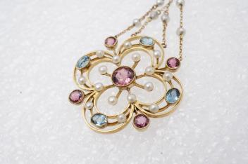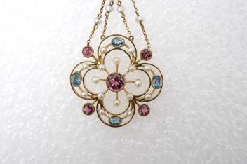 Lot 428 , An attractive Edwardian tourmaline and seed pearl pendant, early 20th century