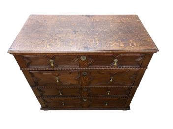 Lot 28 , An early 18th century oak two part chest of drawers, width 102cm, depth 53cm, height 93cm