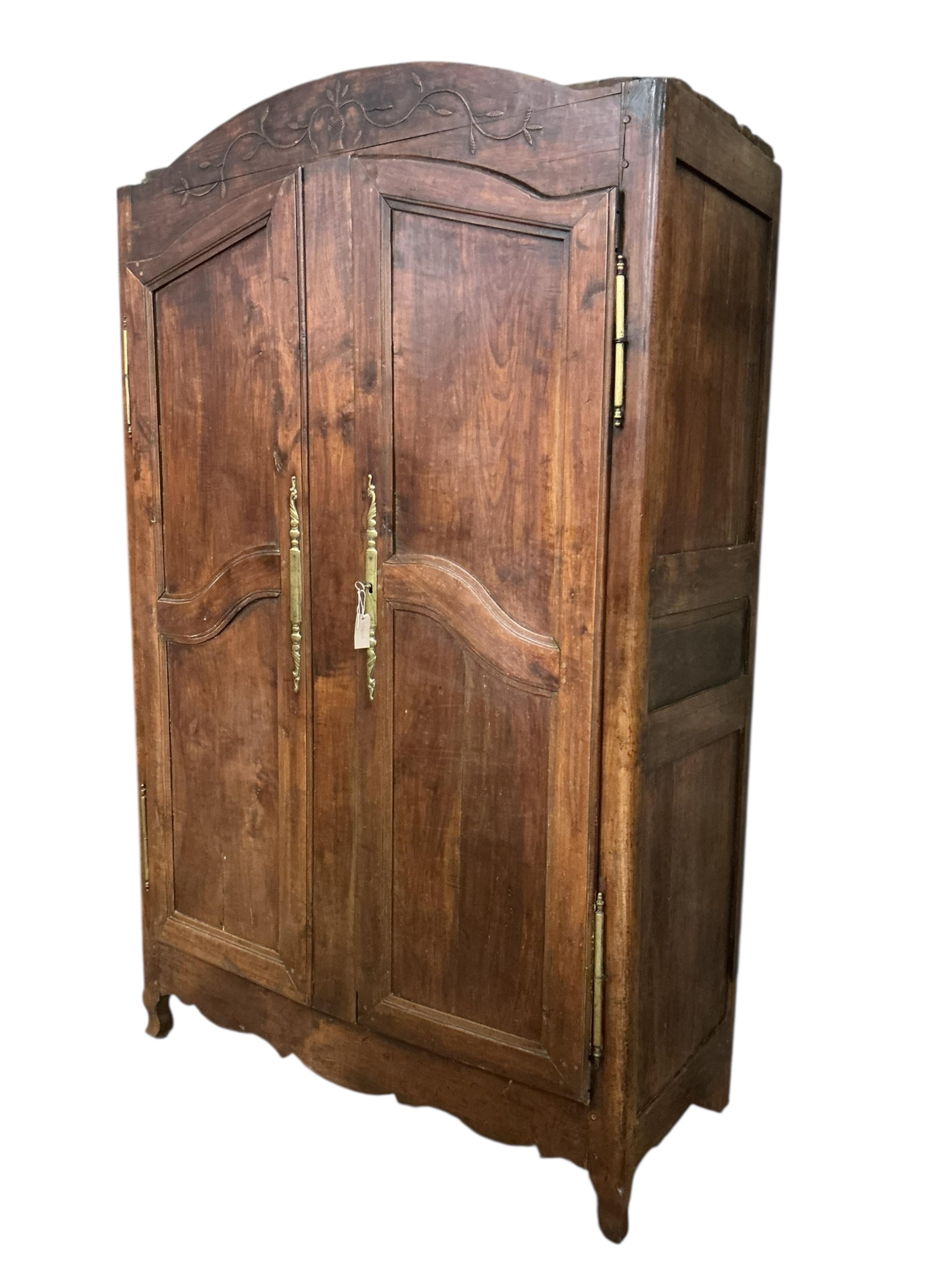 Lot 1107 , An early 19th century French brass mounted fruitwood armoire, width 132cm, depth 60cm, height 219cm
