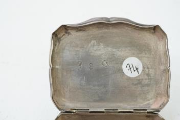 There is a dent to one corner and the decoration is quite tired in places. Tiny splits to the silver at each end of the cover hinge. There appears to be a star fracture to the surface of the silver on the interior of the base.
