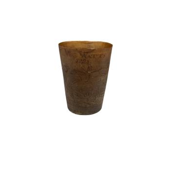 An early 19th century horn hunting beaker, engraved with a hunting scene, named W Watts, dated 1825, 8cm high