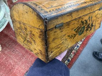Lot 37 , An early 19th century maple box with domed top, hand painted with flowers, 26cm wide