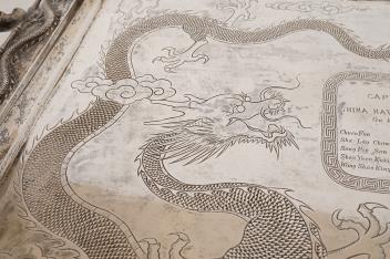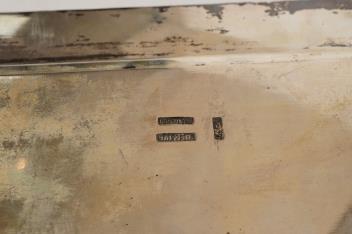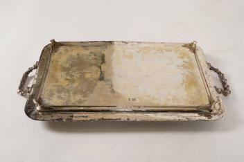 Lot 59 , An early 20th century Chinese Export white metal two handled rectangular tea tray, by Luen Wo, Shanghai, with engraved presentation inscription, 'Presented to Captain John Whittle by the undersigned China Navigation Cos.