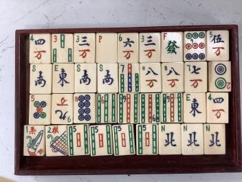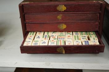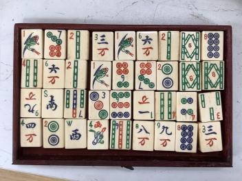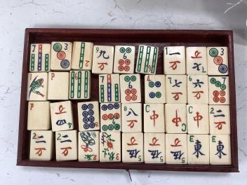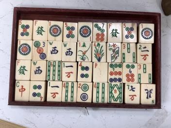 Lot 1429 , An early 20th century Chinese cased mah jong set, 20cm wide x 17cm high