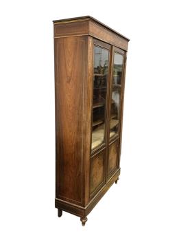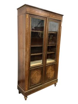 Lot 2016 , An early 20th century French brass mounted marquetry inlaid rosewood bookcase, width 104cm, depth 35cm, height 187cm