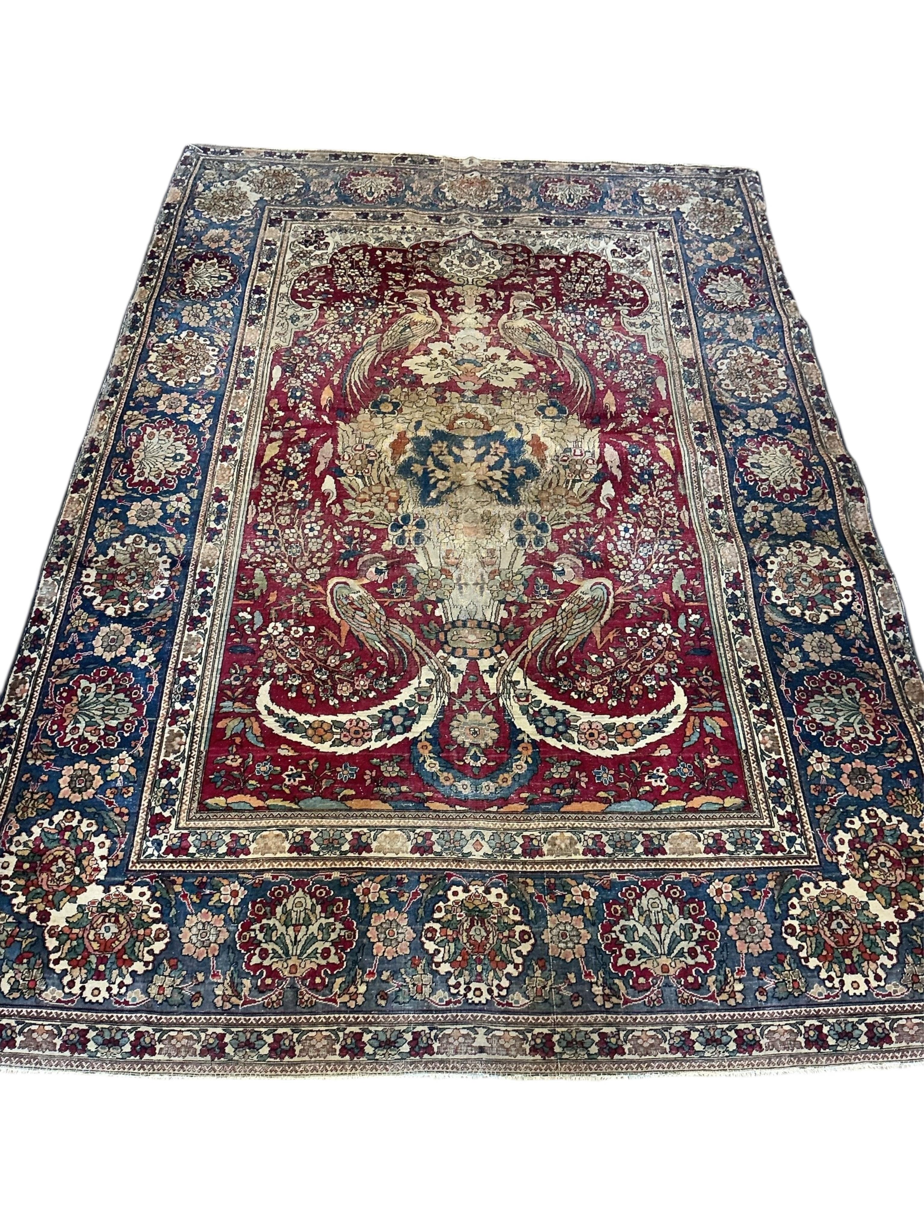Lot 1044 , An early 20th century Isfahan red ground rug woven with exotic birds, 205 x 135cm