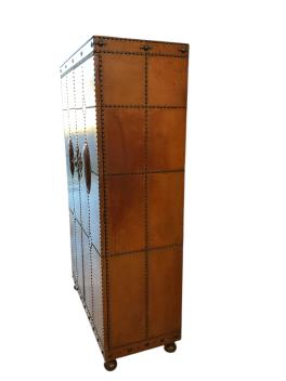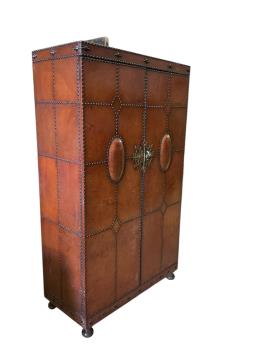 Lot 148 , An early 20th century Spanish style studded, tan leather covered two door wardrobe, width 96cm, depth 46cm, height 168cm