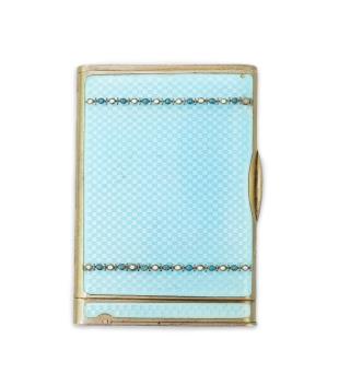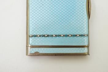 Lot 56 , An early 20th century Viennese sterling and blue enamel combination cigarette/vesta case, inscribed Carl Heiss Wien Graben 11