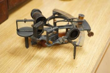 Lot 289 , An early 20th century brass and lacquered sextant without maker’s mark, the mahogany case containing three eyepieces, card certificate of examination by the National Physical Laboratory screwed to the inside of the lid a